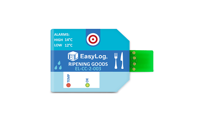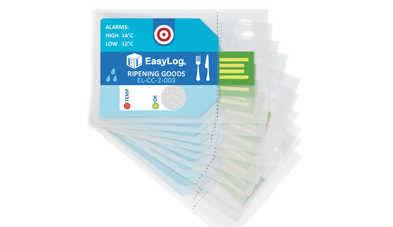 Available in packs of 10, the ultra low-cost single-use EL-CC-2-003 PK10 Ripening Goods data logger measures and stores both temperature and humidity information. The unit comes pre-configured with High 14°C, and Low 12°C Alarms – simply press the button to start logging. During a logging session, pressing the button will light up the status LEDs to give a quick indication of whether the temperature has exceeded an alarm condition at any point. Once your session is completed, tear open the IP67-rated plastic wallet to reveal the USB connector and plug it into your PC. Use the free EasyLog CC software for Windows to download and graph the data.