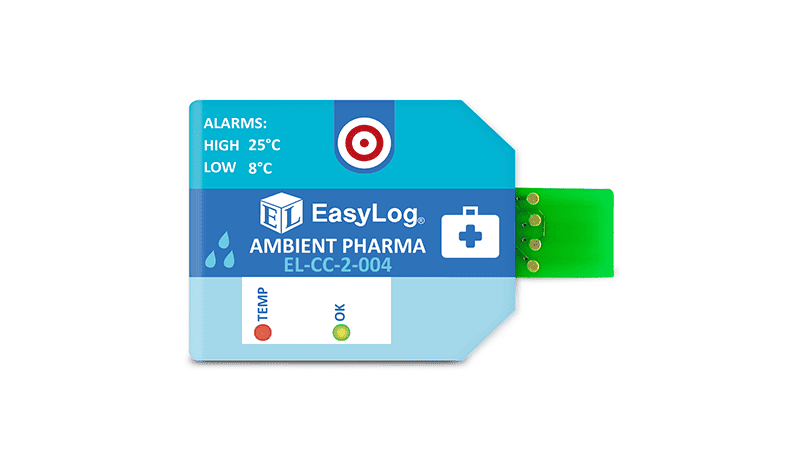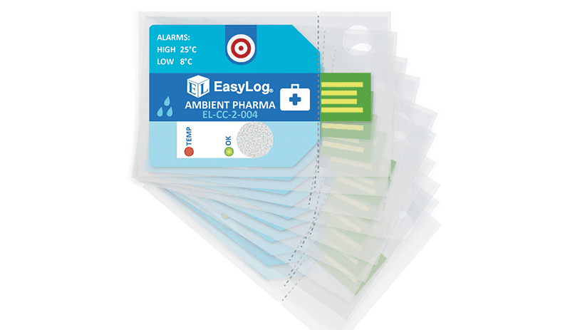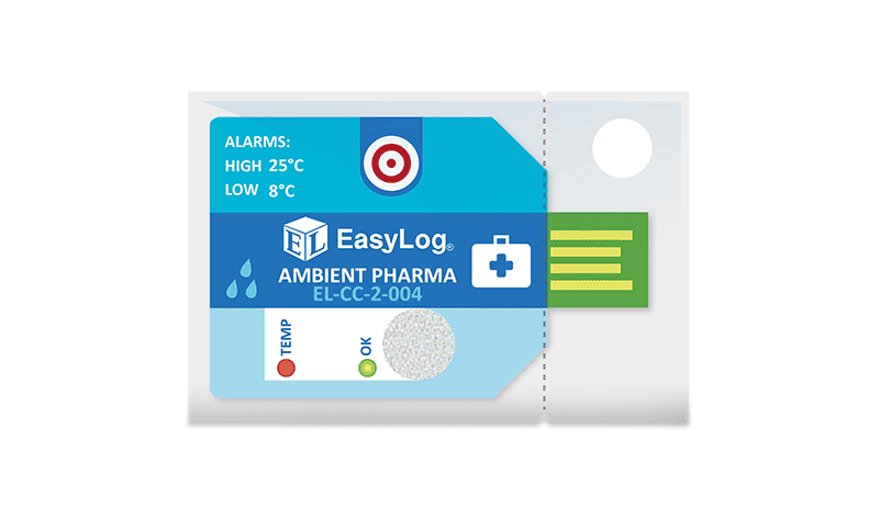 Available in packs of 10, the ultra low cost single-use EL-CC-2-004 PK10 Ambient Pharmaceutical Goods data logger measures and stores both temperature and humidity information. The unit comes pre-configured with High 25°C, Low 8°C Alarms – simply press the button to start logging. During a logging session, pressing the button will light up the status LEDs to give a quick indication of whether the temperature has exceeded an alarm condition at any point.  Once your session is completed, tear open the IP67-rated plastic wallet to reveal the USB connector and plug it in to your PC. Use the free EasyLog CC software for Windows to download and graph the data.