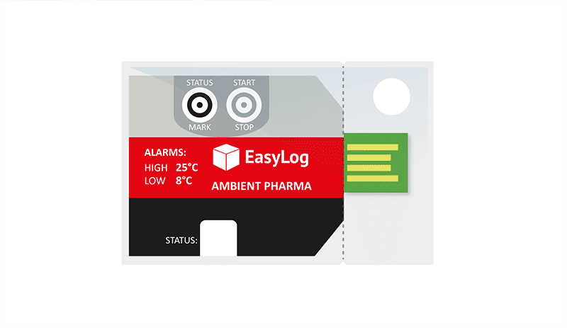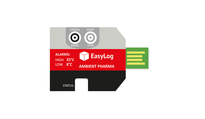 Sold in packs of 10 data loggers, the ultra low-cost EL-PDF-1-004 data logger comes with pre-configured alarms for use with Ambient Pharma Goods – simply press the Start button to begin logging. The LEDs give a quick status update and show whether the temperature has exceeded an alarm condition at any point. When a logging session is finished, simply tear open the waterproof wallet to reveal the USB connector and plug into your PC. The logger will then automatically generate a PDF Report (sample is of an ‘alarms triggered’ report) that you can save to your PC. The “Plug and Play” functionality and compact, lightweight design of this logger make it ideal for logistics use.