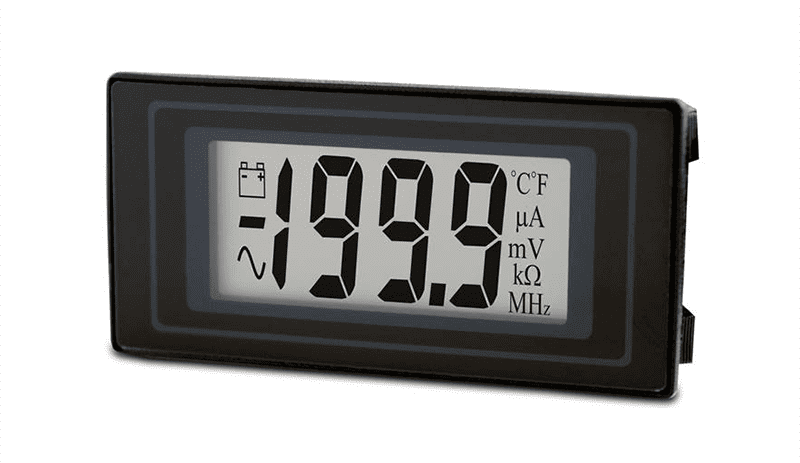 This compact, single rail panel meter features a 3½ digit LCD with 12.5mm (0.5”) digit height, annunciators and a low-profile bezel for mounting. With a 200mV d.c. full scale reading, auto-zero and auto-polarity this meter plugs directly into a 40-way DIL socket or can be panel mounted using the snap-in bezel and window supplied. The DPM 500S is a popular part and is suitable for new designs.