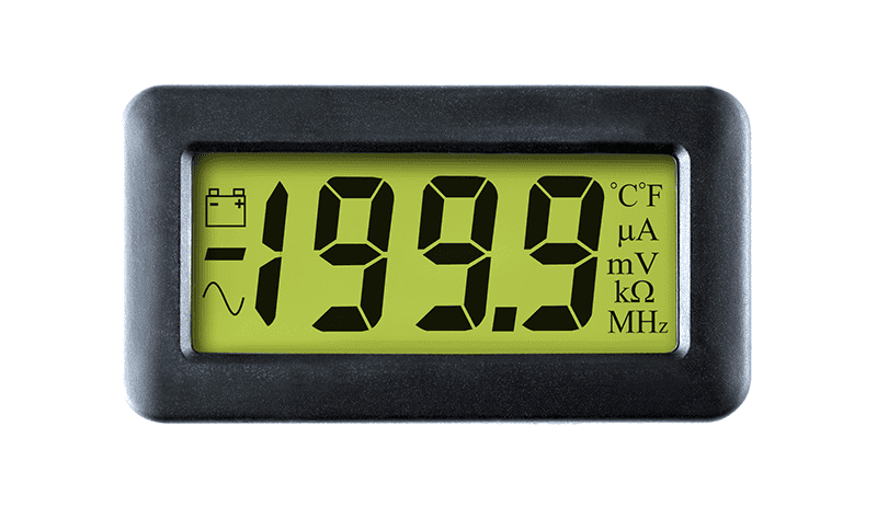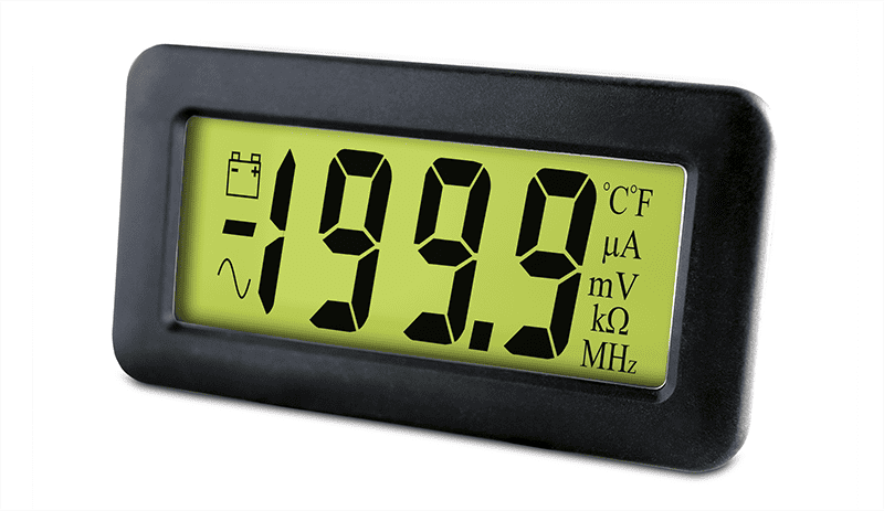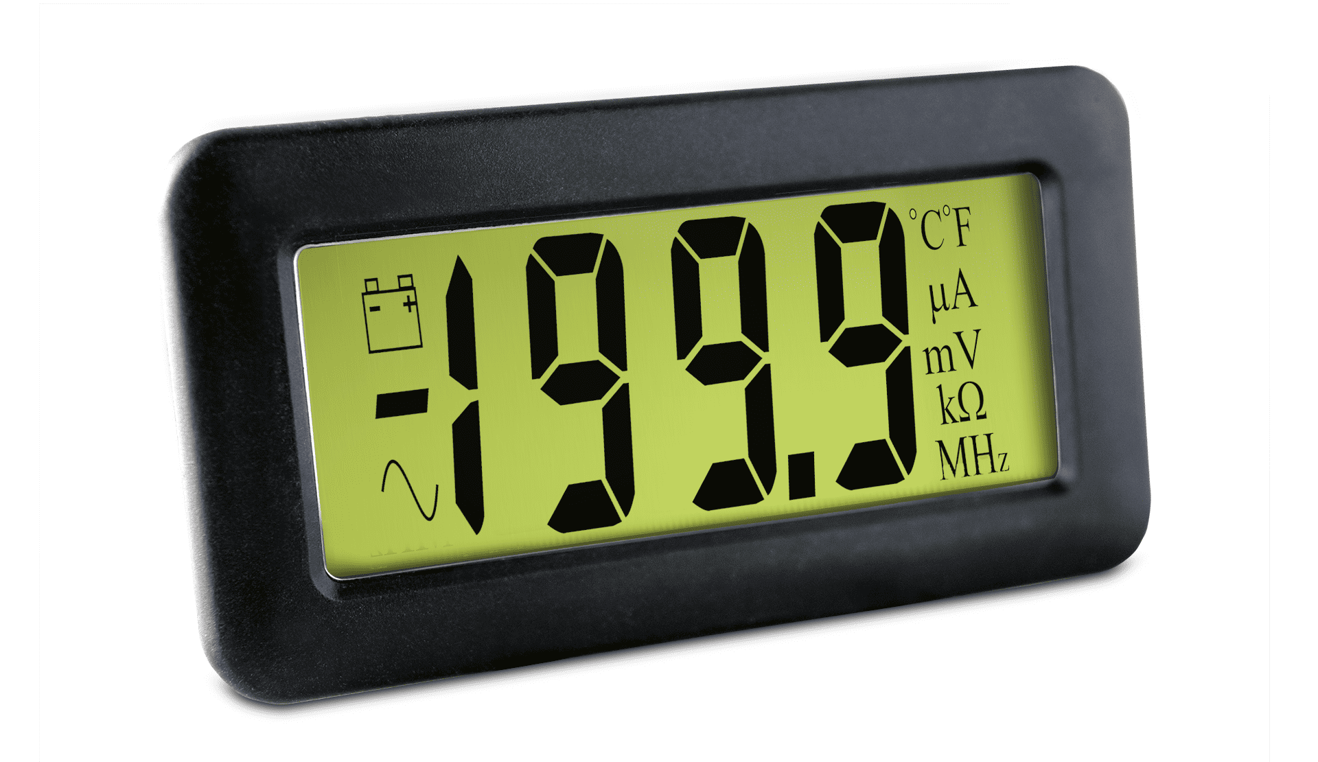 This panel meter features a 3½ digit LCD with 12.7mm (0.5″) digit height, annunciators and LED backlighting. With 200mV d.c. full scale reading, auto-zero and auto-polarity, this meter is connected via solder pads and can be fitted into a panel via the bezel, window and clips provided.