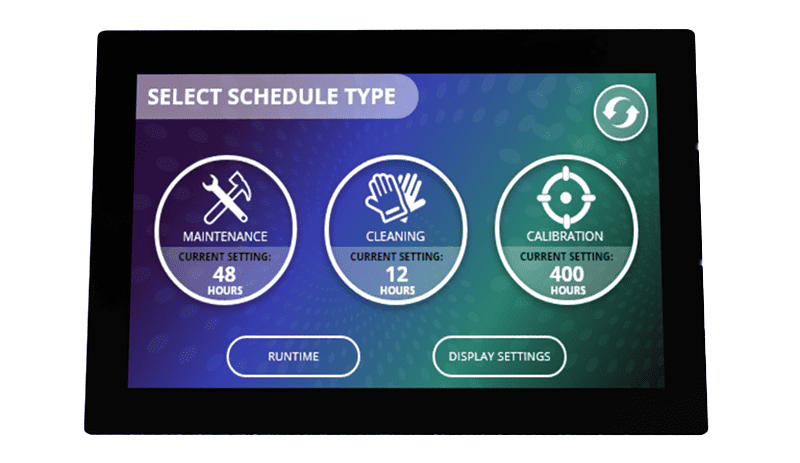 The user interface comprises separate screens allowing you to schedule your machine or device’s maintenance, cleaning or calibration.