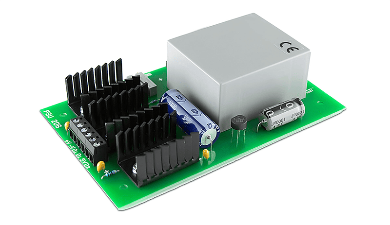 The PSU 206 is a linear power supply with 115V / 240V a.c. input and regulated 5V / 1A d.c., 5 to 15V d.c. / 250mA and -5 to -15V d.c. / -250mA  outputs.  The unit is low profile and features an encapsulated mains transformer and screw terminal connections. The design includes over-current and over-temperature protection. The PSU 206 is a popular part, normally stocked in high quantity and suitable for new designs.