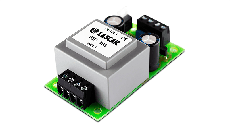 The PSU 303 is a linear power supply with 240V a.c. input and regulated 5V / 200mA and -5V / -50mA d.c. outputs. The unit is low profile and features an encapsulated mains transformer and screw terminal connections. The design includes over-current and over-temperature protection. The PSU 303 is a popular part, normally stocked in high quantity and suitable for new designs.